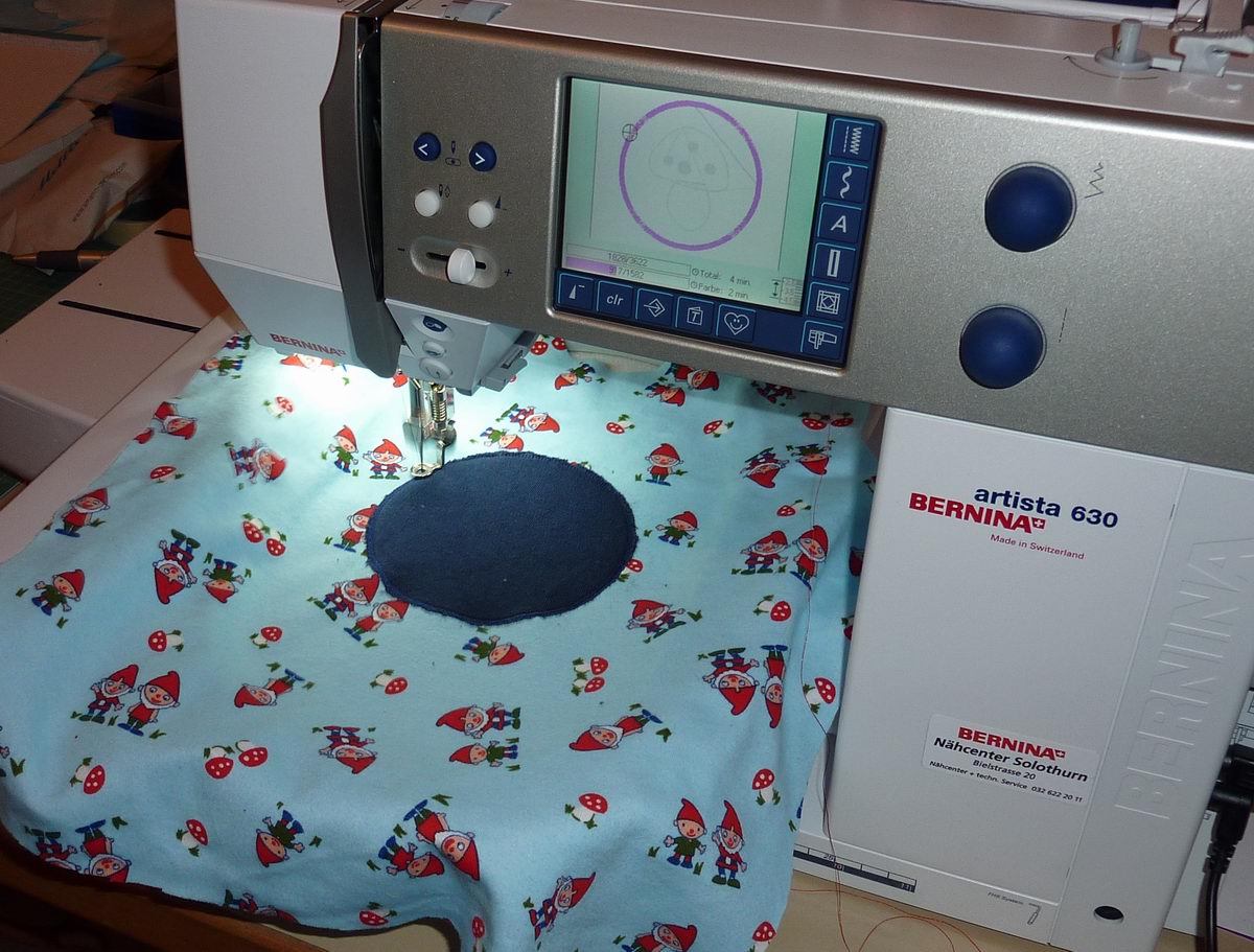 Ich habe eine Stickmaschine und kann damit konventionelle Stickereien oder Applikationen machen.